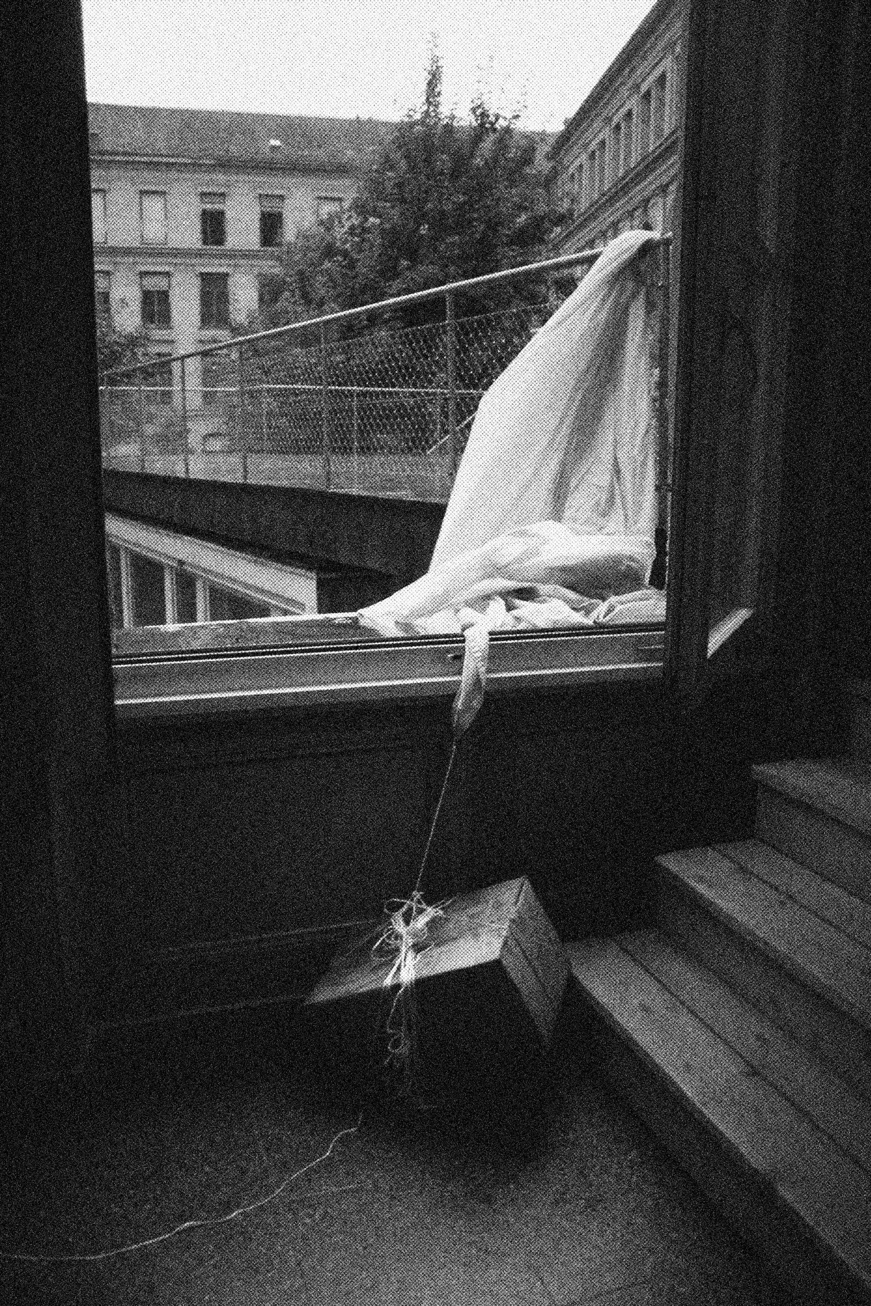 2008 / intervention / various locations / nylon sheet, ropes, cardboard box
