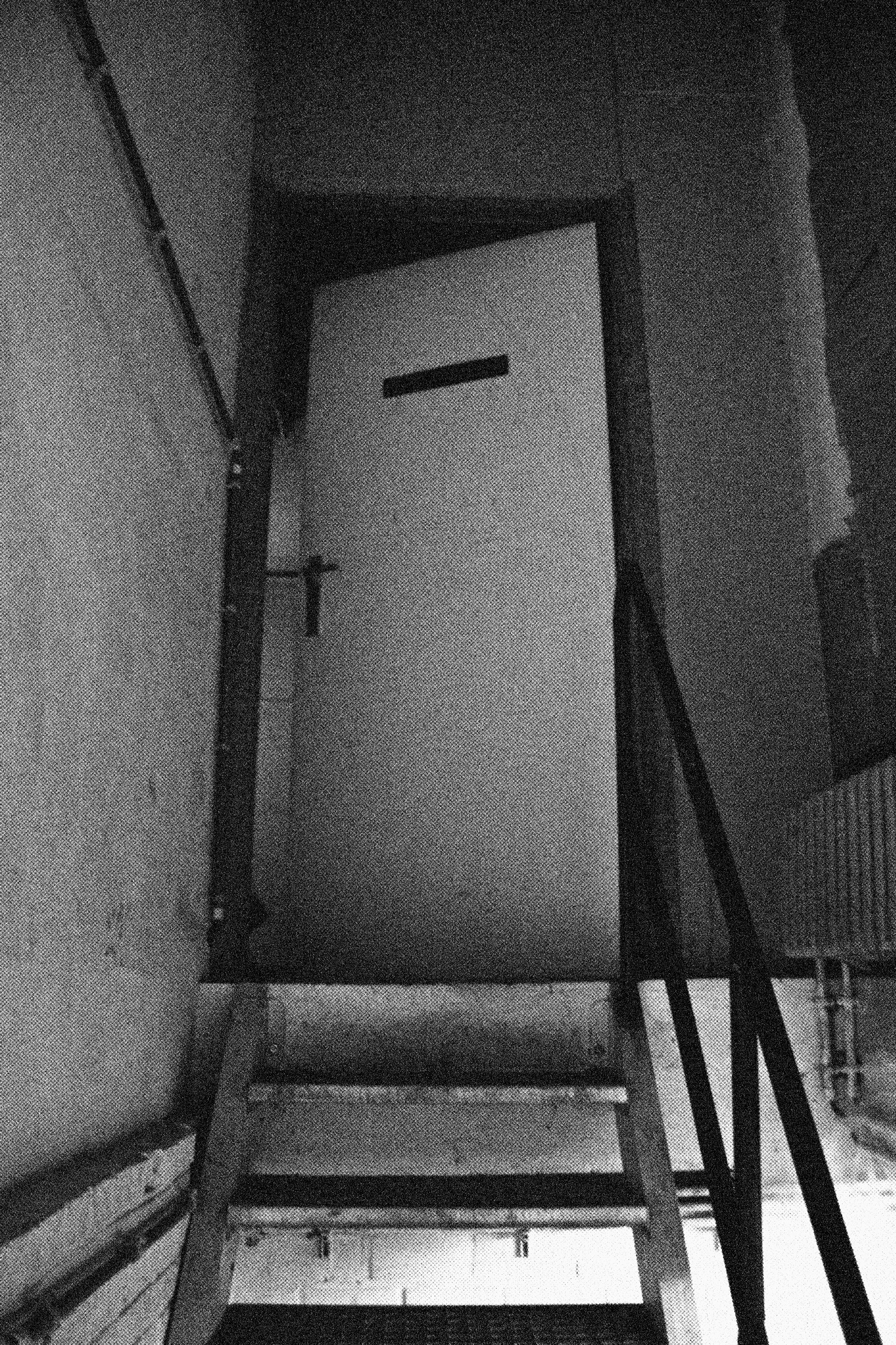 A portrait of a one-week visit by an artist forced to stay at a certain location. The room is locked from the inside but still accessible to the public. Inside, other than the artist’s bed and clothes, photos are taped on one of the walls showing him in various positions and movements while exploring the building in which the exhibition is held: a reflection on urban exploring.